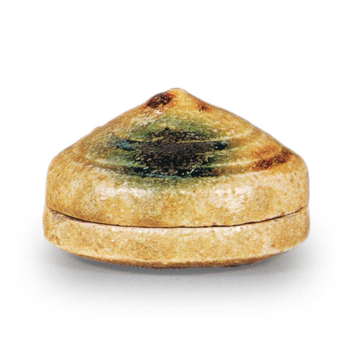 Among Japanese incense containers, this Kiseito Neuta incense container may be the oldest. The Chado Senkei records that one was once attributed to Rikyu’s collection. This likely refers to a kōgō of this type. Also called a “flat jewel,” its shape is considered auspicious. The yellow glaze displays vivid coloration, while the tanban glaze appears generously on the middle of the lid, creating a beauty beyond compare. It is probably one of the finest examples of this type of kōgō.