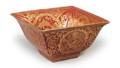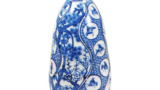 This small bowl features a rim shaped like a snowflake. The rim is narrow and the interior is deep. The interior is decorated with a crane standing on one leg within a circle, while the rim is adorned with a wave pattern. The exterior features a lion holding a jewel and peony motifs rendered in deep underglaze blue. Inside the footring, the characters “Daijapan Eiraku-zō” are inscribed within a double circle, also in blue-and-white. On the lid of the accompanying box, “Blue-and-White Snow-Ring Small Bowl” is written on the front, and “Hozen-zō” is inscribed on the back.