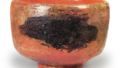 While ‘Nue’ is renowned as a classic example of Dōnyū’s red raku tea bowls, this bowl is a masterpiece every bit as fine as “Nue.” With the rim slightly curved inward, a gentle bulge in the body, a rounded waist, and a taut footring, its form embodies Dōnyū’s characteristic, expansive style. The bowl is thin throughout, with a large, wide interior; it features no tea pool. Tea pools are extremely rare in Dōnyū’s tea bowls, and the characteristic of his work is to create a wide interior without one. This is a red raku ware piece with the character “Raku” stamped inside the footring, coated with yellow clay, and finished with a transparent glaze. However, faint green fire-change patterns appear on both the body and the rim, while the rest is fired to the bright red raku characteristic of Dōnyū. The name “Tanayuki” (Light Snow) was likely given because white areas where the yellow clay has been burned away appear in parts of the fire-change patterns.