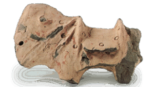 Ceramic inkstones first appeared in Japan in the latter half of the 7th century, first as round-faced inkstones and then as wind-lettered inkstones. The Sanage kiln produced various types of inkstones from the end of the 8th century to the first half of the 9th century, a period of alternation between the two types of inkstones. This inkstone is a rare example of a long-necked waterfowl head. The eyes are made of bamboo tubes, and the feathers are painted on the inkstone, but the movement of the figure is well captured in this inkstone.