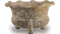 Water droplets are one of the most universal types of vessels made throughout the Kosedo period, along with goji (a type of small bowl with a small opening), and many excellent works were produced during the peak of the Kosedo period from the end of the Kamakura period to the Nanboku-cho period. The left is ash-glazed and the right is iron-glazed, both using coarse clay with a slight iron content. The body is water-glazed, the flat head and feathers are affixed, and the bird’s hair is expressed with a Hanzo bamboo tube and paintings. The two pieces, one with its mouth open and the other with its mouth closed, are not thought to have been consciously made as a pair, but they are lovable works with a frightening expression.