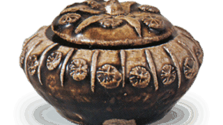 The so-called Chinese tea containers imported from China between the late Kamakura (1185-1333) and Muromachi (1333-1573) periods are known by their shapes, such as “jyoshu,” “oumi,” “bunrin,” “eggplant,” and “maru,” but the small jar shown here is closer to a maru tea container. This is the first Koseto tea caddy that can be dated back to the end of the Kamakura period (1185-1333). The base is a grayish color with a slight iron tinge, but the clay was selected for small jars and was ground thin. The iron glaze is purplish brown with blackish tints and is well fused and shiny.