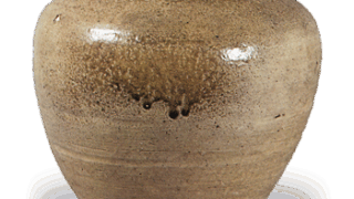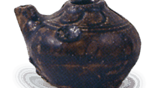 The oral band is slightly lower than the center of the vase, and the lobed shape is quite broken. The body is also slender, and it was probably made near the end of the 14th century. The shoulder is decorated with a comb-grain line, under which a floral design is painted over the entire surface of the vessel. The ash glaze is almost evenly applied over the entire surface. It is slightly oxidized and has a yellowish green color.