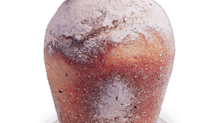 At the height of the Koseto period, Buddhist vases of various sizes were produced. Although this Buddhist vase is small, it faithfully represents the characteristics of each part of the vase. The mouth of the lily-shaped mouth is decorated with arabesque motifs, and the body, which is blurred at the bottom, is stitched with arabesque motifs. The iron glaze is uneven, with darker areas showing a blackish purple color.