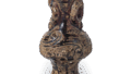 This is probably the smallest Buddhist vase from the peak period of sealed flower design, with each section correctly represented. Only the orifice of the lily mouth is large, giving it an incongruous appearance. The flat body is decorated with 20 round markers in the center, 14 small petal-like markers on the shoulders, and 36 markers on the legs.
