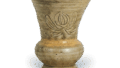 This is an early example of an early Buddhist vase, and the oral part has not yet been opened very wide. Correspondingly, the foot of the pedestal is also not wide open, indicating that the vase was formed in consideration of the equilibrium of the shape. The ash glaze is thick and stable with the addition of feldspar, and shows a beautiful green coloration due to reduction. This is an excellent example of a simple yet beautiful vase.