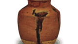 This rather large iron-glazed tea caddy could be mistaken for an iron-glazed goji, but there is no doubt that it was made as a tea caddy, as it was carefully iron-glazed using grandmother’s bosai clay, leaving the base unglazed. The old seto axis is not very shiny and “uneven,” and cannot be considered a success.