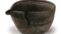 This type of large bowl, called a taihei-bachi or kataguchibachi, is a new type of ground bowl that appeared around the end of the 11th century, when the transition from ash-glazed pottery to mountain tea bowls occurred, and has a form common to medieval kilns. While kilns in western Japan and the Hokuriku region began to carve grids on the interior surface around the middle of the Kamakura period (1192-1333), the characteristic feature of this bowl is that it did not have grids until the late Muromachi period (1333-1573) in various kilns of the 瓷器 type in the Tokai region, such as Seto and Tokoname. This piece is made of coarse white clay containing pebbles and fired by reduction firing, with a bright green natural glaze running over the interior and exterior surfaces of the grayish-white vessel. Although it still has an elevated base, the rounded edge of the mouth rim and the loss of a bulge at the waist suggest that it should be dated to the middle of the Kamakura period.