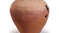 This is one of the oldest medium-sized jars in Tokoname. The neck of the jar is heavily outwardly bowed, and the edge of the rim is thinly ground to show sharp edges, and the joint between the neck and shoulder is sharp. The body is formed in three sections by winding up the clay and joining them together. The surface is grayish black due to reduction firing, but the dark green natural glaze flows down from the shoulder to the body, giving it an attractive appearance.