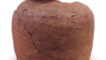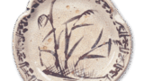 Suribachi, or large flat bowls, are one of the basic products of the medieval Sanchawan or Tokoname kilns, and come in a variety of shapes and sizes. This kataguchibachi is a shallow, flat-bottomed bowl with a large base, and a portion of the mouth rim protrudes outward in a kataguchi-shape. It is made of iron-rich clay and is extremely well finished, with a brownish-brown color and a natural glaze with a decayed-leaf color on the interior surface.