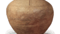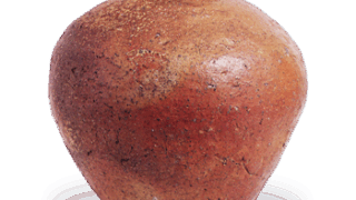 This large jar has a shoulder band and the upper half of the neck has been polished away. The mouth rim has a large trumpet-shaped opening. The base is rich in sandy texture, and it was formed by rolling up a cord-work wheel. Parallel sunken lines are drawn on the upper edge and the center of the shoulder, and eight upward arcs are placed between the central sunken line. In addition, there are three meandering sunken lines between the central sunken line and the buttresses. It is one of the representative examples of Atsumi’s unique jars with lotus petals design, and the surface is blackened due to the reduction firing process. This is why it is called a “black jar.
