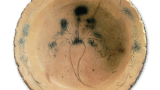 There is a single large kiln crack on the bulging body. There is one small horizontal and vertical crack. The entire body is thick and has a powerful appearance that can only be achieved with sturdy Iga ware. The top of the body is covered with seven horizontal stripes and has rectangular ears on the left and right sides. The bottom of the body was formed flat, but cracks in the kiln during firing distorted the shape, so small legs were later added to the front two sides to correct the tilt. The front is covered with a young grass-colored ash glaze, and the back and bottom are slightly reddish, leaving a large circular mark on the bottom. Originally, it was not inscribed with the name “Habukuro,” but it was given this name when it was designated as an Important Cultural Property.