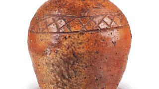 The firing is quite good, but the natural glaze on the shoulder has not yet melted, giving it a yellowish sesame appearance.