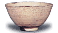 The inscription “uchi funrin no hon” (written by Rikyu on the lid of the box with an accompanying tray) indicates that it had already appeared in that period. Compared to ordinary bunrin, this piece is characterized by its very taut shoulders, and it is also unusual in that it has a fraying like an eroded leaf in the center of the itokiri (thread cutting). The overall luster of the piece is beautifully glossy with an ameiro glaze, and the view of the yellow glaze trickling down the surface is interesting. Originally owned by Katagiri Ishu, it was given to Matsuura Shigenobu in 1672 for 700 koban, and has been in the family ever since. (Taisho Meikikan)