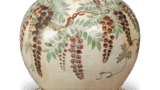 This jar, with a constricted neck, is usually referred to as a jar, but since it has the same shape as the jar inscribed in Kagen 4 and the inscription reads “kamen,” it should be treated as a jar. This form was originally derived from a Sue ware jar, and is probably related to a medium-sized jar. It is made of fine-textured clay with high iron content, and has a reddish-brown skin with a light yellowish-green glaze characteristic of Echizen. The two cross-shaped cross-shaped engravings on the shoulder are more for decorative effect than for mere kiln marks. The inside of the 1.3 cm rim band at the edge of the mouth rim is a so-called hizukuchi, and judging from the tension of the shoulders and the shape of the lower half of the body, it probably dates back to the late 13th century. It has a geta mark on the underside.
