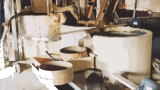 There are various names for these bowls. The one that has been handed down in Daitokuji Temple in Kyoto is called “Daitokuji Kureki”. The name “kiri-kureware” is derived from the fact that it has a cut-out base, and also from the fact that the tea puddle is so deep that it looks as if it has been pushed up against the ground. Other names for this type of wuware include: wu-ware, e-wu-ware, bansho wu-ware, yugi wu-ware, hanshi wu-ware, sabozan wu-ware, kata-wu-ware, tan-ban wu-ware, shin-wu-ware, go-to wu-ware, gohon wu-ware and mosaic wu-ware. (Wahan Chashiki, Chado Sentei, Pottery Shukai)