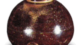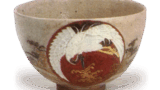 Chuko Meibutsu. Hafu-gama tea caddy, Shibusagami tebotsu-honka (poem on astringent paper). This tea caddy was owned by Nakajima Soko (née Shiojian), a pupil of Kobori Enshu. It is a large Wabi-cha-irie with a wide mouth and a rough potter’s wheel on the body. There is a glaze hole like a knot, and there are three vertical channels on the horizontal lines of the potter’s wheel. After Shioji-an, it was handed down to Iyomori Kuchiki, Hachiroemon Okuda, Norimup Matsudaira, Sagamimori Hotta, Sadamori Itakura, Chushichi Ohashi, and Yoemon Taru, and was purchased by Fumai Matsudaira for 500 ryo, and has been in the Unshu family since. (Meibutsu Ki, Kokin Meibutsu Ruiju, Rimpo Kameryu, Taisho Meikikan)