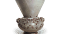 Of the ten bowls of the same shape, three are yellow-glazed bowls among the Shosoin ceramics. The base is made of grayish-white, rather coarse clay, skillfully wheel-thrown, and thinly detailed. As with the Nisai bowls, the bottom of the bowls is smooth and thin. The bottom of the bowl is still in the guttation form and has a pale eggshell color. The glaze is pale yellow with a slight greenish tinge and faint silvering. The outer surface has a whitish mottled pattern called “Gohon,” which often occurs when fired at a reducing neutral temperature. The edge of the mouth is chipped in some places, but this is common to all of the arms, and is the result of stringing when the vessels were stacked and hung from a string. There is a lot of rubbing on the surface of the vessel, and the use marks are evident.