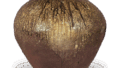 This jar, with a slightly slender, upright mouth and neck with a rounded tip and a nearly spherical body, dates to the early Momoyama period. The blackish-brown surface of the earthenware is coated with iron glaze applied with a brush, and over this the candy-colored natural glaze runs down to the lower half of the body. It was around this time that Echizen began applying iron glaze to vases.