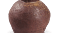 The most common form of Echizen o-haguro jar from the Momoyama period (1573-1600) is a tokuri (sake bottle) type with a narrow, tapered mouth neck and a slightly long body. Most of them do not have twin ears on the shoulders. Many of them also do not have a single mouth rim. The inside of the mouth and neck, as well as from the shoulder to the lower half of the body, is covered with a yellowish-brown natural glaze, which has a whitish tinge. There is a kiln mark on the shoulder.