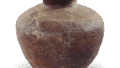 This pottery should be considered Kaga Kōtō considering the outwardly folded rim band and the tenacious quality of the clay. The taut shoulders suggest that it was made in the late Kamakura period. There is an imprint of twilled cedar on the shoulder. The surface of the clay has been brushed and adjusted, and the well-fired brownish-brown surface is lightly coated with a natural glaze. It is one of the few Kaga pieces of this type.