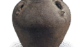 This ware was excavated from under a five-wreath pagoda inscribed on August 27, 1431, in the cemetery commonly known as the Kamakura Yashiki, about 100 meters from the front gate of Myosen-ji Temple. It is typical of the mid-Muromachi period, with a narrow mouth and neck and a large bulge in the upper half of the body. The ears are also thin and weak with ridges. It is made of fine-grained, high-quality clay, and was shaped by rolling up the clay with a pommel, while the surface of the vessel was carefully shaped by cutting vertically with a pommel. It is valuable as a reference material.