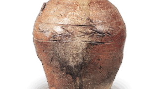 As a manifestation of the belief in the use of relics, which began in the Nara period (710-794), a large number of five-ring pagoda-style relic vessels were produced from the late Heian period through the Kamakura and Muromachi periods (1333-1573). Many of them were made of gold body and crystal, and there were also examples of them being stored in storehouse vessels in addition to pagodas. This is one of the few ceramic vessels of this type, which is divided into two parts, a fire ring and a water ring, and has holes in the water and earth rings to hold the sharps. The top surfaces of the ku-fu and mizu-ji rings are covered with a light gray natural glaze.