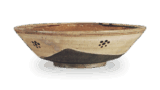 The interior is deep and has five sandy lines, the center of which is hollowed out due to loosening of the clay. There are a few small and large chips along the edge of the mouth, and it is finished with black lacquer. The body is split in two, as described in “Chuko Meimono-Roku” and “Fushimiya Kakusho,” and the body is made of black lacquer.