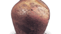 A large number of small vases with this type of one-sided mouth have been found in Iga, and some of them have a rope pattern on the shoulder. The mouth neck is generally trumpet-shaped and outwardly bowed, and part of it is bent to form a one-sided mouth with a groove on the interior surface. The slightly shouldered, large-bottomed, vertical body has a distinctive style. The clay used was rich in feldspar, and the firing was good, with the feldspar melting well and blowing out like white dots all over the surface of the vessel. The dark skin has a warm and relaxing atmosphere with fire color in some places. There is a concave geta mark on the underside. A ten-kiln mark is engraved on the shoulder with a corresponding ten-kiln mark on both sides.