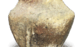 There are two types of small Shigaraki jars: those with a twisted N-shaped mouth rim in the Tokoname style and those without such a rim. This jar falls into the latter category. The body is made in a four-tiered hagi-maki style with a rolled-up clay cord. The clay contains coarse particles of quartz feldspar, which did not melt because the firing temperature was not very high, causing numerous cracks on the surface of the vessel.