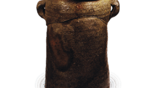 This is a stately jar with a tight neck and thick jade rim. It is molded with rolled-up clay, and the surface of the vessel has been adjusted with brushwork. The shoulder is decorated with three comb lines. The body is covered with a yellowish-white natural glaze, which gives this jar its unique appearance.