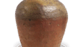 This is a heavy jar with a thick jade rim and stout shoulders. It is made of high quality clay containing a few fine grains of silica stone, and the clay is rolled up and molded. The shoulders are decorated with three rows of chinkansen lines using a fine mixed comb. It is fired in a reduction firing and has a grayish-black color with a grayish-blue sesame sprinkled natural glaze on the shoulder.
