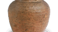 This stout and short katakuchi jar is a good example of the transition process to small katakuchi jars of the next generation. It is wheel-thrown and thinly raised. The body is decorated with three thin, fishhook-shaped engravings in a woven pattern, which may be kiln marks or decorations. It is not known if they are kiln marks or decorations. The pottery is well fired and has a grayish-black color overall due to reduction, but part of the shoulder and mouth rim are oxidized and have a brownish-brown fire color.