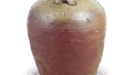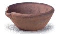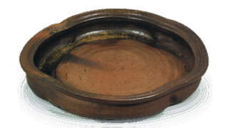 The chronological change in Bizen mortar bowls can be clearly seen in the construction of the mouth rim. The mouth rim is thickened on both sides to create a flat rim that tilts outward in a corded clay roll-up molding. There is a geta mark on the bottom back. The inner surface is carved radially with thirteen grated lines using a comb with six teeth. The ware is poorly fired and tiled, and has a light brown color with slight fire tints. There are black spots on the outer surface.