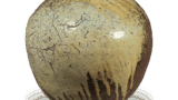 It is an exquisite work of wheel-thrown pottery made with water-grinding using high quality clay mixed with rice paddy soil. The body is inscribed with a seven-line inscription in painted ink: “Dedication: Yokoozan Hondo Tamesetsu Sansan Seijo Mon Ya Shu Koto Sho Ibe Kimura Yojiro Eiroku 12 Uzuki Hatsuatsuichi Keihaku” (Twelfth year of the Era of the Era of Eternal Peace: 201 days of the first month). It is known to have been dedicated as a Buddhist vessel. The ware is of excellent workmanship, with a brownish-brown color and a yellowish-green natural glaze on the shoulder.