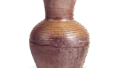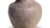 This wide-mouthed, short-necked jar with a corded body is often seen in Bizen ware, but there are a few examples of the same type in Echizen ware. It is made of rolled clay with a flattened rim. The body is covered with a triangular cross sectional band and has ears on both sides to which oval shaped clay cords are attached.
