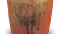 This small jar with a unique Tamba style is thought to have appeared in the late Muromachi period. It is thinly made by winding up corded clay, and the surface of the vessel is shaped in the so-called “cat-scratched hand” comb pattern.
