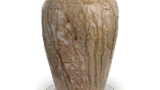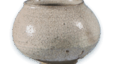 This is another example of the long jar series. The difference between the two is that the mouth rim of a round-bodied jar maintains a sharp anti-mouth rim, whereas that of a long jar is horizontally inflected to create a rounded rim band. Tanba, however, does not create a distinct tama-rim. This jar is also typical of such long jar type cat painted vases, with a dark green natural glaze on a blackish brown ground.