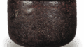 The style of this bowl is a complete change from the “Okuro,” “Toyobo,” and “Kitano Kuro,” with the mouth held strongly inward, the body tightened, and the waist curved strongly. The waist is curved and the body is tightened. The area from the waist to the edge of the high stand is wide and shallowly stepped, and one side of the waist is decorated with a chamotori spatula. The height is low and small, with a slight indentation around the base and a Tomoe-shaped kabukin carved inside the base, but it is not as sharp as the “Okuro” model. What is completely different from the “large Kuro” is that the overall shape is quite thin, especially the bottom is thinner than expected. The brownish-black glaze is fired moist and smooth, but does not have the glossy skin of “Okuro” and “Touyoubou. Among the Chojiro ware tea bowls inscribed by Rikyu, this one could not be included in this volume, but it is similar to “Gandori,” and the workmanship is quite strong. Its ancient origin is unknown, and the date when it came into the possession of the Muromachi Mitsui family is also unclear.