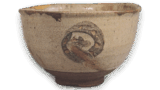 The rim of the mouth is gently undulating and is also held inward. The body rises slightly and is slightly tightened at the center of the body, and the waist is clearly curved. The height of the body is slightly high, and the tatami mat is flat. The inside of the stand is flat and there is no width to the helmet. The kase-glaze applied to the entire body has a rough surface. Half of the inner box is missing, and the inscription “Choujirou-yaki Tea Bowl” by Soatsu remains on the remaining part. Originally, the inscription may have read “tea bowl,” but it seems that later generations misread “tea” as “grass” and added the character for “hermitage” to make the inscription “Soan” (hermitage).