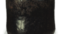 This tea bowl is similar in appearance to the “Okuro” but somewhat different in workmanship. There is one other red tea bowl with the “Jirobo” inscription, but there are several Chojiro ware tea bowls with the same inscription in existence, and an old record suggests that there was one other “Okuro” bowl as well. It is a little thicker than other tea bowls, and the mouth is held slightly inward, with a high rise and a rounded waist, and a slightly high and clear base. The base of the bowl is also rather high and clear. The tatami mats on the base are flat and thin, but the inside of the bowl is deeply cut at an angle. The glaze over the entire body is a little darker, and the kiln has changed to an uneven brownish color. There are no clear marks. On the front of the black lacquered lid, Muneaki wrote “Jirobo Motohaku (flower seal)” and on the back of the lid, Saso wrote “Jirobo black tea bowl with Rikyu’s signature, by Soshitsu (flower seal), written by Sen Sodan with the same brush on the box front. Both are written in vermilion lacquer.