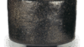 This is a small cylindrical tea bowl with a strong artifice in its workmanship. The base is thin and the tatami mats are covered with three large eye marks, the body is narrowed, and the prospective view is deep, with a tea reservoir in the center. On the back of the lid of the inner box, Jyoshinsai wrote “Choujirou-yaki black tea bowl, left side (hanaseki)”.