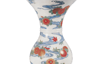 Jar Vase with chysanthemum and water stream design, enamelled ware Vase with chysanthemum and water stream design, enamelled wareHeight 33.2 cm, mouth diameter 19.4 cm... 2024.06.23 JarKakiemon