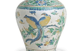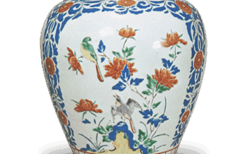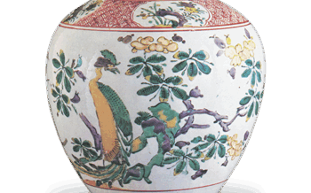Jar Jar with flower-and-bird design, enamelled ware Jar with flower-and-bird design, enamelled wareHeight 26.3 cm. This vase was once part of the Dramai... 2024.06.29 JarKakiemon