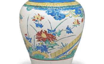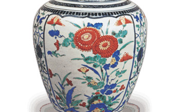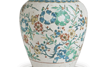 Jar Jar with plum design, enamelled ware Jar with plum design, enamelled wareHeight 22.0 cm The body of this vase shows a design of plum blos... 2024.06.29 JarKakiemon