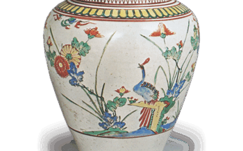 Jar Jar with flower-and-bird design, enamelled ware Jar with flower-and-bird design, enamelled wareHeight 25.0cmIdemitsu Museum of Arts Compared to the ... 2024.06.29 JarKakiemon