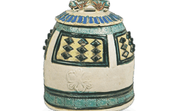 Plaque with rounded dragon design, enamelled wareDiameter 24.8 x 24.7cm, 5 legsKurita Museum of Art ...