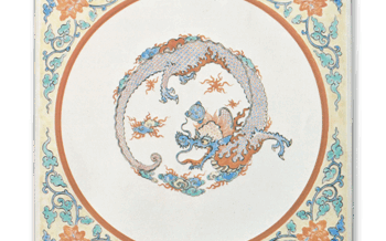 Kakiemon Plaque with rounded dragon design, enamelled ware