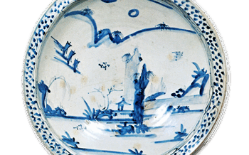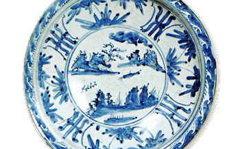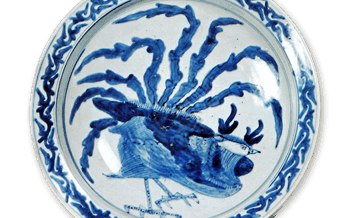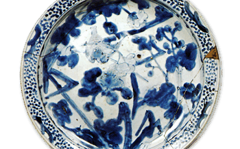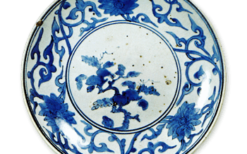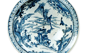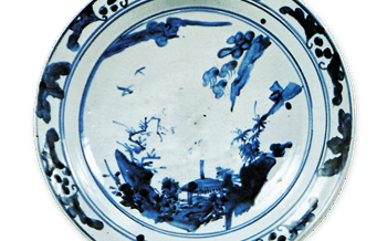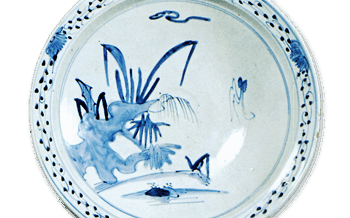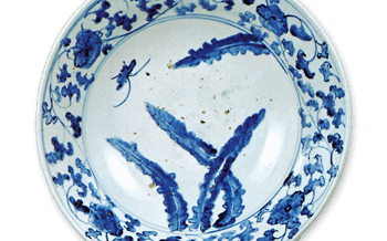 KoImari Large foliated dish with bamboo design,