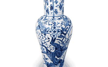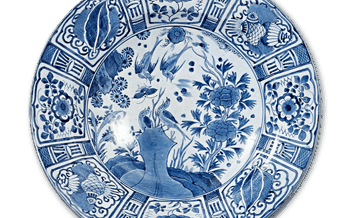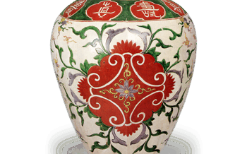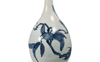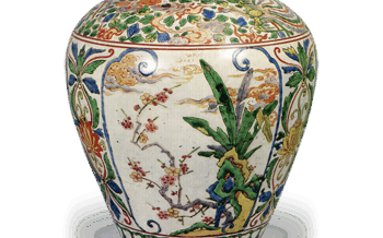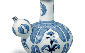 KoImari Square wine bottle with oblique line design, enamelled ware